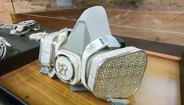 #Петербургская ювелирная мастерская Mozi Jewelry создала респиратор из белого золота стоимостью 10 млн рублей. Изделие инкрустировано 3 750 бриллиантами, однако его смело можно использовать в качестве защитного средства