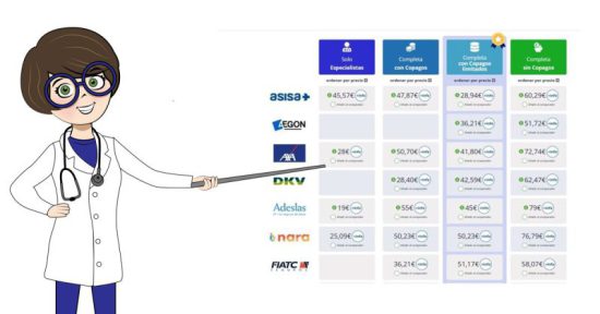 Se abona una pequeña cantidad por gasto médico y se establece un tope de gasto por servicios médicos al año, que suele oscilar entre 250 y 300 €.» Una vez alcanzado, ya no se desembolsa más. De esta forma, se disfruta del acceso a los mejores especialistas y a los medios de diagnóstico privados reduciendo los tiempos de espera de la Seguridad Social, con una prima más baja que sin copagos.