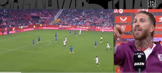 El defensa del Sevilla Sergio Ramos interrumpió su entrevista tras la derrota de este jueves contra el Athletic Club para mandar callar a un aficionado en la grada del Ramón Sánchez-Pizjuán.