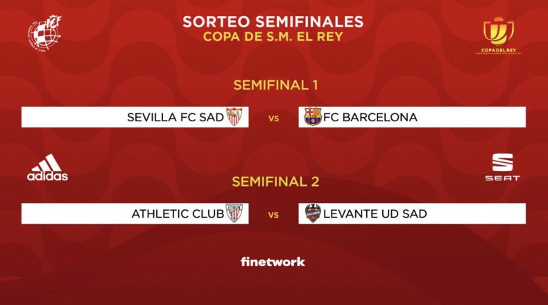 Sevilla FC-FC Barcelona y Athletic Club-UD Levante son los emparejamientos de semifinales de la Copa del Rey, tras el sorteo puro celebrado este viernes en la Ciudad del Fútbol de Las Rozas.
