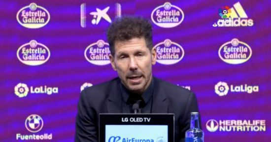 El entrenador del Atlético de Madrid, Diego Pablo Simeone, destacó de manera especial, como una «marca» rojiblanca, el título liguero conquistado este sábado por llegar en «un año tan difícil», con la pandemia, los estadios vacíos y el maratón de partidos.