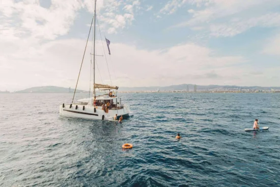 Lo más importante es disfrutar de la experiencia de navegar en catamarán por la costa de Barcelona. Con Sondevela, los pasajeros pueden sumergirse en la belleza del mediterráneo y deleitarse con las vistas espectaculares de la icónica línea costera de la ciudad. Ya sea navegando hacia el horizonte dorado del atardecer o explorando calas escondidas, cada momento a bordo es una oportunidad para crear recuerdos inolvidables.
