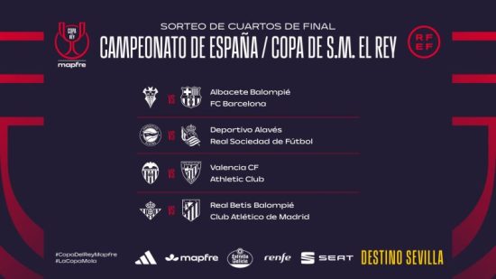 Además, el bombo ha dejado un atractivo duelo entre el Real Betis y el Atlético de Madrid en el Estadio de La Cartuja, mientras que el Valencia CF recibirá en Mestalla al Athletic Club y el Deportivo Alavés a la Real Sociedad en Mendizorrotza.