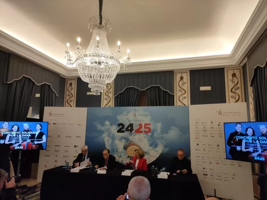 La presidenta de Patrimonio Nacional, Ana de la Cuerva, y el presidente del Teatro Real, Gregorio Marañón, han presentado este miércoles ‘Stradivarius por la dana’, el concierto benéfico en favor de los afectados de la dana que tendrá lugar el próximo 20 de enero a las 19:30 en el propio Teatro Real.