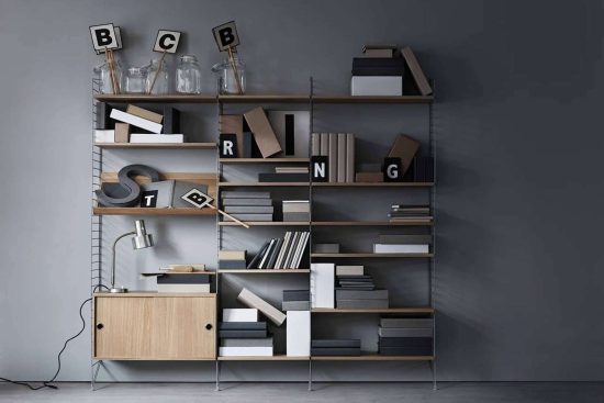 El sistema de estantería flexible que actualmente produce String Furniture fue diseñado por el arquitecto sueco Nisse Strinning con la colaboración de su esposa Kajsa Strinning en 1949 y, desde entonces, conserva un aire minimalista. Estos módulos son tan polivalentes que sirven para crear un mural en el salón, una zona de escritorio o incluso un despacho en el que todos los documentos estén ordenados.