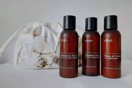 El Hair & Body Shower Set de Sublime Oils incluye tres productos esenciales de 100 ml cada uno, perfectos para cumplir con las regulaciones de viaje y facilitar su transporte. Este set destaca por su capacidad de personalización, permitiendo a los clientes seleccionar los productos que mejor se adapten a sus necesidades específicas. Junto a estos productos, el set incluye un exclusivo neceser de diseño propio, confeccionado con un tejido innovador y único en Europa: 100% reutilizable, biodegradable, waterproof, hidrorepelente y reversible. Este neceser, además de reflejar el compromiso de Sublime Oils con la sostenibilidad, también ofrece una practicidad excepcional para el viajero moderno.