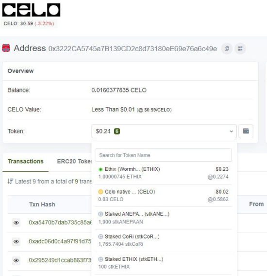 0x3222CA5745a7B139CD2c8d73180eE69e76a6c49e (CELO Blockchain)
