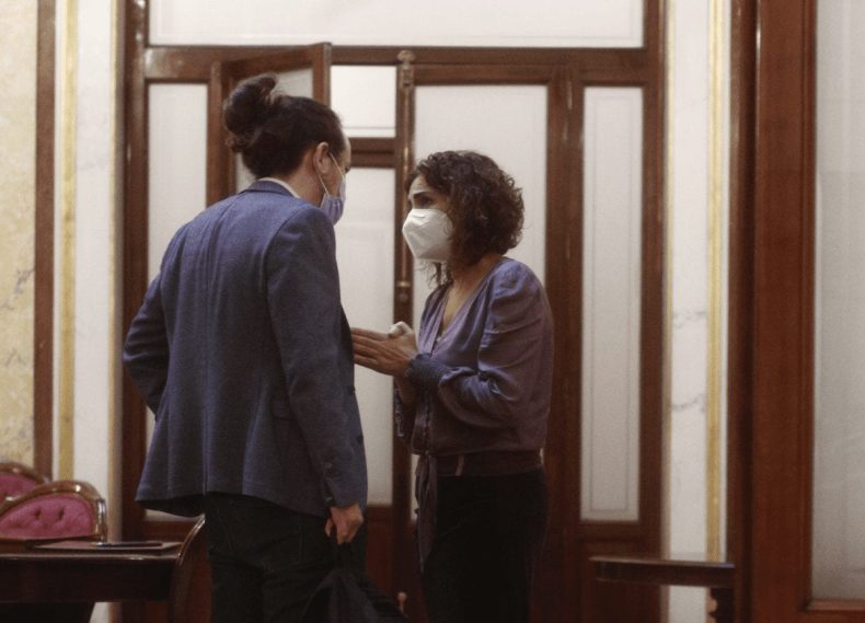 El vicepresidente segundo del Gobierno, Pablo Iglesias, y la ministra de Hacienda, la socialista María Jesús Montero, han protagonizado este miércoles una tensa conversación en los pasillos del Congreso hasta el punto de que se ha oído a la portavoz pedir al líder de Podemos que no sea «cabezón».