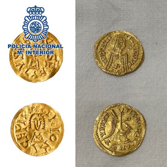 Agentes de la Policía Nacional han recuperado en León y en la localidad ciudadrealeña de Saceruela dos monedas visigodas consideradas de gran valor histórico. Se trata de dos tremisses, y una de ellas presenta una variante onomástica desconocida hasta ahora que la hace única e incrementa su valor.