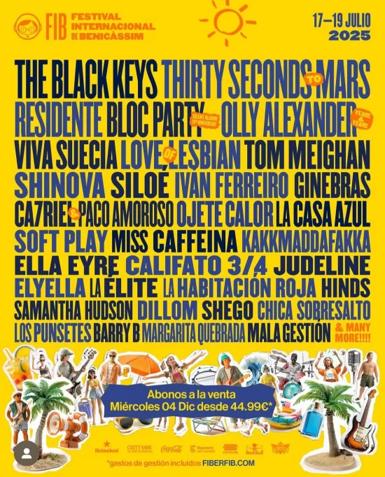 The Black Keys y Thirty Seconds To Mars encabezan el cartel del Festival Internacional de Benicàssim (FIB) para la edición de 2025, que se celebrará del 17 al 19 de julio, según ha confirmado la organización.