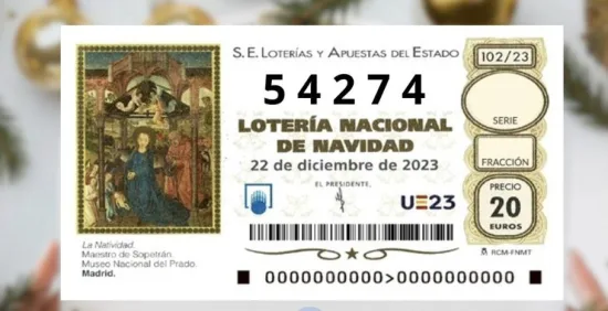 El número 54.274 ha resultado agraciado con uno de los ocho quintos premios del Sorteo Extraordinario de Lotería de Navidad, dotado con 60.000 euros a la serie.