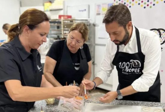 El director del Instituto de Turismo de la Región de Murcia (ITREM), Juan Francisco Martínez, acompañado por la alcaldesa de San Pedro del Pinatar, María Visitación Martínez, han presentaron las propuestas, una de las cuales será crear trampantojos de chocolate de langostinos del Mar Menor, con la guía de la maestra chocolatera Patricia Pérez.