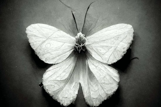 Tal y como se ha indicado con anterioridad, cada una de las piezas que conforman Transformación se distinguen por una impactante sobriedad. A diferencia de Damien Hirst –quien, en su célebre serie Butterflies, utiliza los propios cuerpos de las mariposas para realizar composiciones fastuosas y próximas a los diseños de la alta costura-, Antonio Sánchez Castro ha insertado a estos insectos en un marco limpio, impactantemente desnudo en el que toda la “arquitectura” ontológica, creativa y emocional que los construye se pone frontalmente de manifiesto. De su tránsito por los reinos de la muerte y de la vida, cabe inferir que la mariposa es un ser híbrido: en su cuerpo lleva la huella de ambos estados. Una mariposa no es tanto muerte superada cuanto muerte transformada. La muerte se transforma en vida. O lo que es lo mismo: las alas de la mariposa son la vida hecha con la materia de la muerte. Esta forma de hibridación parece haberla asumido Antonio Sánchez Castro en la propia técnica empleada para la elaboración de cada trabajo: la mezcla de fotografía, dibujo y arte digital. Pese a que la historia de la cultura la ha elevado a imagen por excelencia de la pureza, la mariposa constituye el ser impuro por antonomasia: su vida entrelaza diferentes formas muy alejadas entre sí; en una fase se arrastra por el suelo, y, en otra, vuela; unas veces es visible; otras, invisible; pertenece al ámbito de la vida, pero también al de la muerte. Que la complejidad de esta realidad haya sido abordada por el autor mediante una técnica híbrida supone todo un acierto que refuerza considerablemente el empaque conceptual de cada una de estas imágenes.