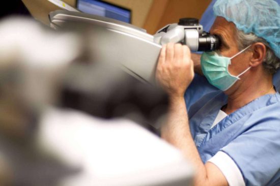 La segunda opción plantea, a su vez, dos alternativas: una es la intervención del globo ocular con láser excímer, recomendada para personas cuya presbicia se encuentra en su etapa inicial y que consiste en un moldeado de la córnea para mejorar la profundidad del foco. El proceso se cumple de manera ambulatoria, con anestesia tópica.