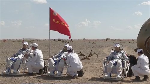 Nie Haisheng, Liu Boming y Tang Hongbo despegaron de la Tierra el 17 de junio y pasaron tres meses en el espacio, un récord para los viajeros espaciales chinos. Los taikonautas, como se conoce a los astronautas chinos, se someterán a una cuarentena de 14 días antes de que puedan regresar a casa «porque su sistema inmunológico puede haberse debilitado después de la larga misión», dijo a CCTV Huang Weifen, diseñador jefe del proyecto espacial tripulado de China.