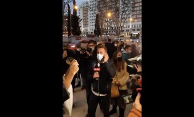 Un grupo de negacionistas escupe al reportero de ‘Cuatro al día’ durante la entrega de los Premios Feroz