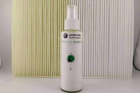 Esta empresa ha desarrollado la tecnología Umbrella Zero, que consiste en un recubrimiento nanotecnológico de larga duración, que posee propiedades antivíricas y antibacterianas. Se aplica de manera sencilla por pulverización directa, se fija sobre la superficie del material y permanece activo durante toda la vida útil del filtro del sistema de climatización.