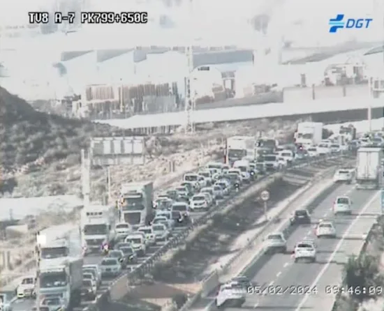 Un accidente en cadena en el que se han visto implicados cinco vehículos en la autovía A-7, a la altura del Puerto de Almería sentido Murcia, ha provocado, al menos, un herido y retenciones de hasta nueve kilómetros a lo largo de la vía.