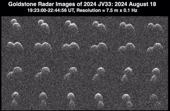 Esta serie de imágenes de radar obtenidas por el radar del sistema solar Goldstone, en California, el 18 de agosto, muestran al asteroide 2024 JV33 poco antes de su aproximación cercana a la Tierra.