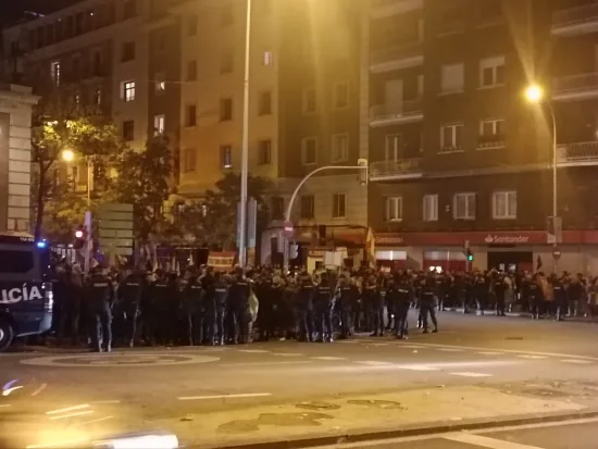 Sobre las 19.30 horas, la Policía ha hecho un cordón con numerosos efectivos alrededor de los manifestantes evitando que corten la calle Ferraz y sin poner ninguna valla de protección como ha venido siendo habitual en jornadas anteriores.