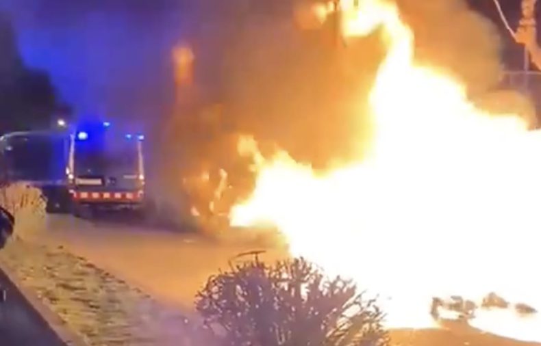 La manifestación ha empezado en torno las 19 horas, donde un grupo ha empezado a quemar contenedores y ha creado barricadas mientras lanzaba botellas contra la línea policial de los Mossos d’Esquadra.