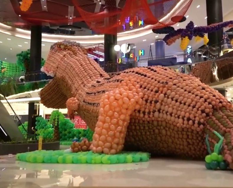 Los artistas erigieron la escultura como parte de una exposición sobre el reino animal y consiguieron un nuevo récord a la escultura más grande construida con globos.