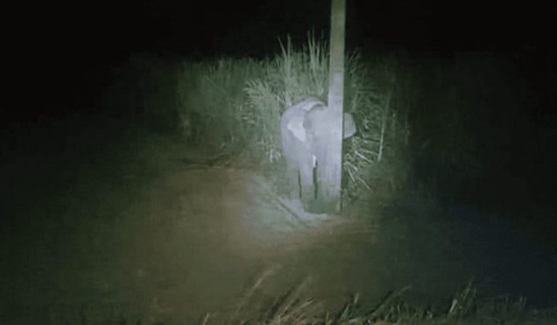 Un bebé elefante que intentó esconderse detrás de un poste al ser sorprendido comiendo caña de azúcar en un campo ha enternecido a los internautas.
