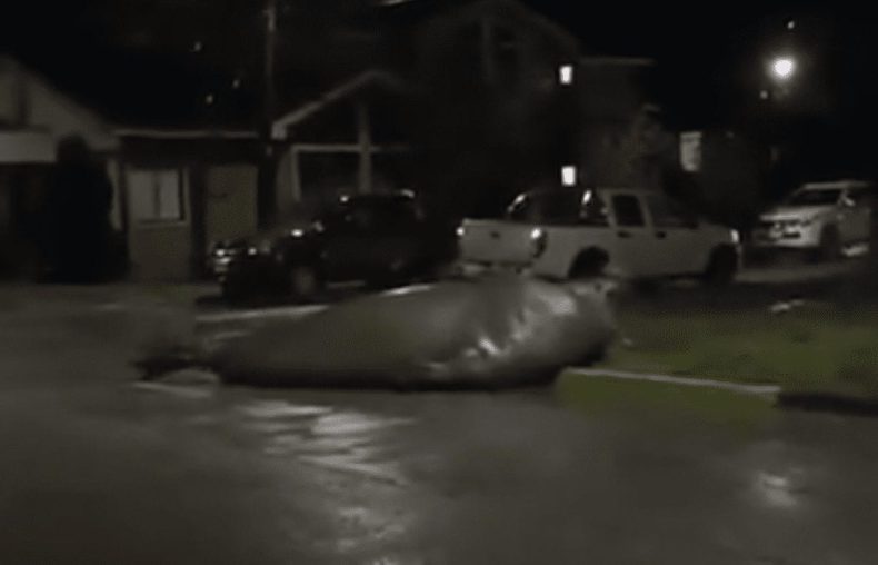 Un elefante marino de grandes dimensiones fue grabado durante esta madrugada paseando desorientado por las calles de una localidad del sur de Chile.