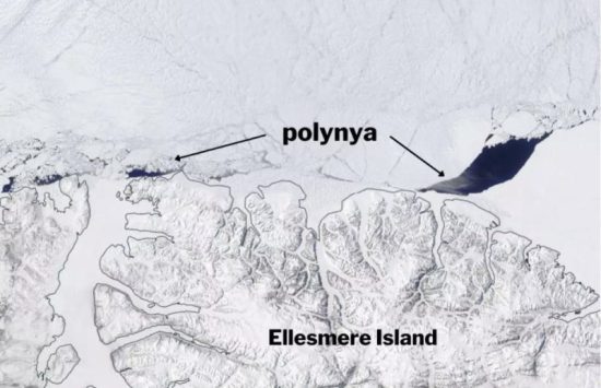 La formación de la polinia fue inusual debido a su ubicación, frente a la costa de la isla de Ellesmere, donde el hielo tiene hasta cinco metros de espesor.