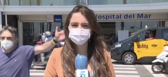 La periodista y su cámara retransmitían desde la puerta del Hospital del Mar de Barcelona cuando un paciente, que salía del centro muleta en mano, fingió dar una colleja a la reportera.