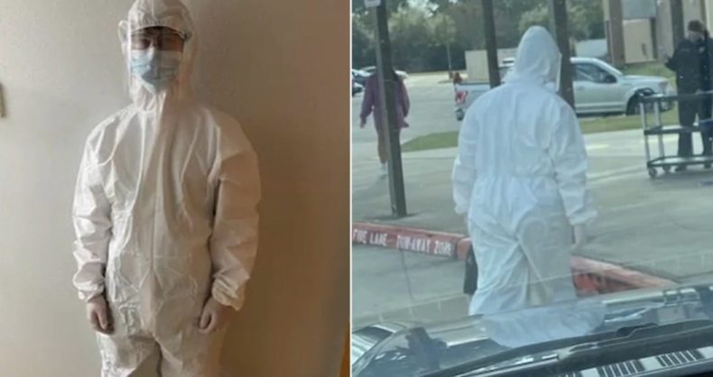 Un estudiante universitario acudió en Texas para realizar sus exámenes ataviado con un traje de bioseguridad (EE.UU.) para protegerse de un posible contagio de coronavirus después de que afirmara que las autoridades no están haciendo lo suficiente para proteger a la población.