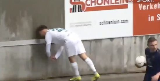 Joueur de l'équipe de football ⚽️ de Chemie Leipzig emporté par sa course n’a pas pu s’arrêter … droit dans le mur !! 🫣😬 pic.twitter.com/YmUMwJU4oz