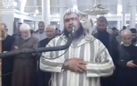 Lo más curioso del momento es la reacción del Imán, pues en vez de empujar al gato, se dispuso a acariciarlo mientras este llegaba a sus hombros. Incluso el felino frotaba su hocico contra el rostro del religioso.