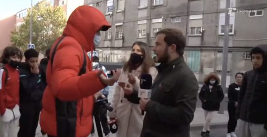 Un grupo de magrebíes acorraló e insultó a un reportero de la nueva cadena 7NN mientras informaba desde el madrileño barrio de Villaverde, donde un policía abatió a tiros a un hombre que amenazaba a los viandantes con un cuchillo.