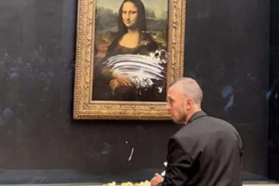 Un hombre en silla de ruedas ha lanzado este domingo una tarta a La Gioconda en pleno museo del Louvre de París. Afortunadamente, el cristal de seguridad que protegía la obra impidió que el cuadro quedara dañado.