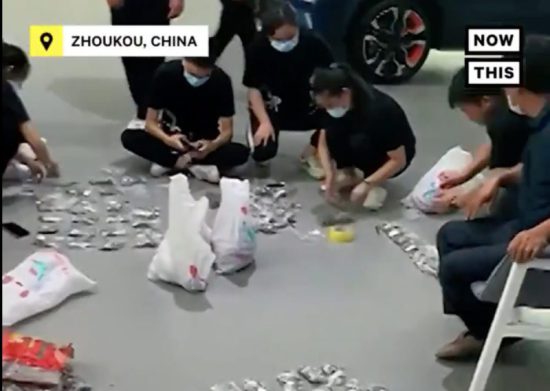 Un ciudadano de Zhoukou, China, pagó con 17 sacos cargados miles de renminbi un automóvil en un concesionario de coches de la ciudad.