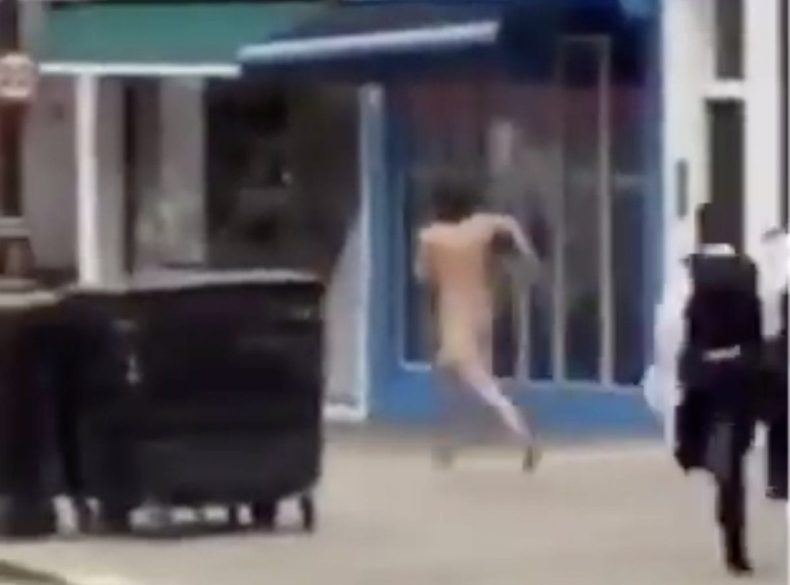 Las imágenes de un hombre huyendo desnudo de la policía se han viralizado en las redes sociales.