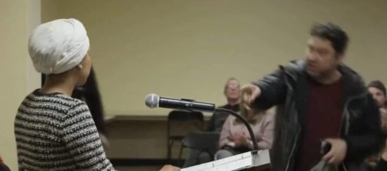 You can hear Omar demand to continue the town hall — and she's back to speaking now from the podium. pic.twitter.com/4OpSWHo0Z9