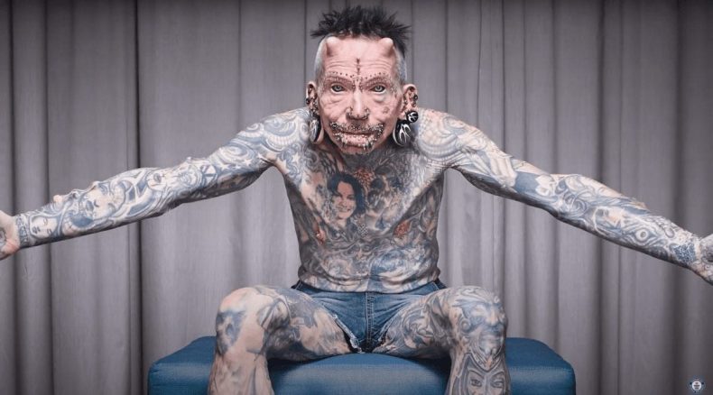 Rolf Buchhol se realizó su primer tatuaje a la edad de 40 años, desde entonces no ha parado. Sus cambios incluyen tatuajes, piercings, implantes bajo la piel; e incluso ha alterado su color de pupilas y ojos.