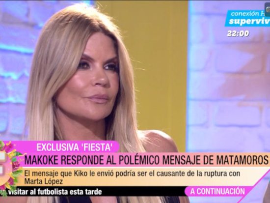 Antes de terminar el mensaje, quiso pedirle que no lo compartiera con nadie por las posibles malinterpretaciones que podría tener, algo que ella ha cumplido hasta este momento en que alguien ha querido compartir el contenido del mismo. Minutos antes de revelarse esta conversación, Makoke aseguraba estar harta de cómo Kiko hablaba de su boda y de cómo ponía en duda que estuvieran enamorados cuando dieron el gran paso. Tras desvelarse el mensaje, quedaba claro que su relación se deterioró mucho después, recordando el gran enfrentamiento televisivo que tuvo lugar tan solo un año después del mensaje. La colaboradora de televisión quedaba satisfecha por la defensa de su relación con Kiko, de la que tanto se ha comentado en los últimos años.