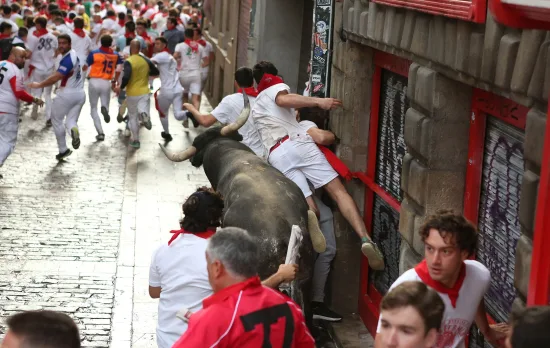 La manada ha enfilado la cuesta de Santo Domingo con un toro a la cabeza desde los primeros metros. A un ritmo fuerte, ha cogido la delantera sobre el resto del grupo y apenas ha dado opción a los corredores a realizar carreras bonitas en este tramo, en el que se han visto numerosas caídas.