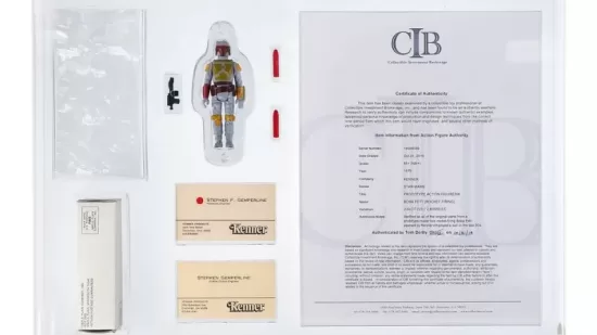 Una figura de acción de Boba Fett de la línea de juguetes Star Wars de Kennerde 1979 ha roto el récord como el juguete vintage más valioso del mundo. La subasta, realizada por Goldin, concluyó con un precio final de $1,342,000 dólares por este codiciado artículo.