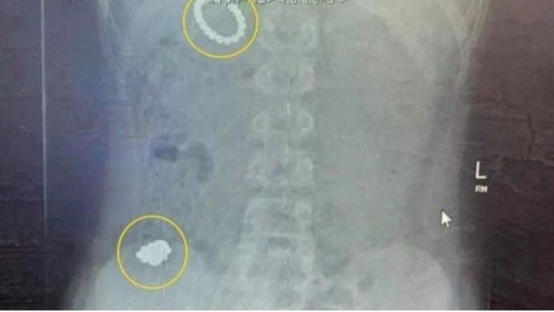 La progenitora lo trasladó al Salford Royal Hospital, desde donde fue derivado al Royal Manchester Children’s Hospital después de que los especialistas vieron en una radiografía 54 imanes en el interior de su estómago e intestino.