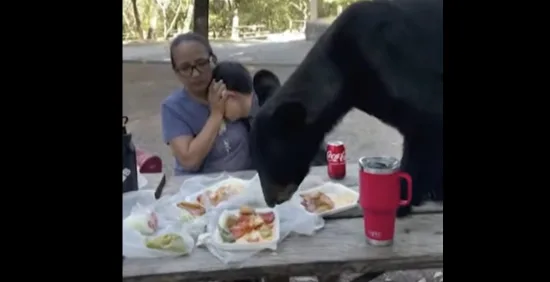 El video de lo ocurrido resume en un instante protección, sabiduría, supervivencia e instinto maternal, pues la mujer protegió de forma valerosa a su hijo con síndrome de Down, luego que el oso negro interrumpiera su almuerzo campestre y empezara a devorar las enchiladas, los tacos y las papas fritas.