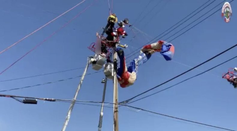 Un hombre disfrazado de Papá Noel, que sobrevolaba en parapente la ciudad de Sacramento, en California (Estados Unidos), casi muere electrocutado al quedar enganchado en unos cables de alta tensión.