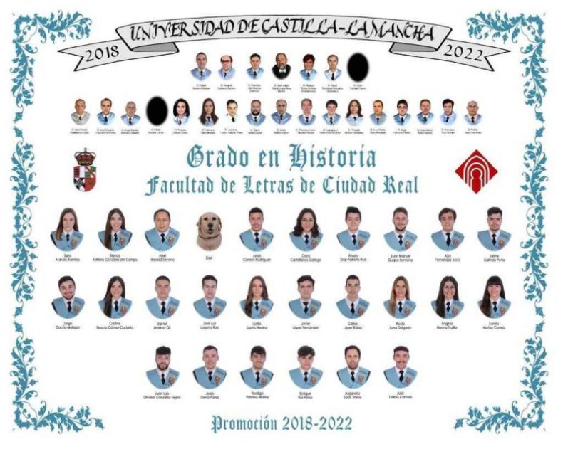 Abel Beldad, una persona ciega de Ciudad Real afiliada a la ONCE, que se ha graduado en Historia en el campus de Ciudad Real de la Universidad de Castilla-La Mancha, ha conseguido que Desi, su perra guía, su compañera de fatigas en su periplo universitario, salga en la foto de la orla de su curso.