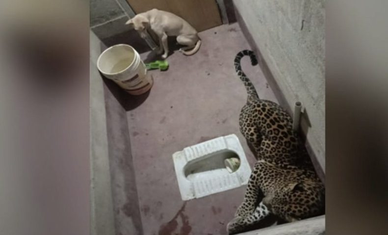 Según los servicios forestales del país el can trataba de escapar del ataque del leopardo cuando se metió en el baño de una casa en la citada ciudad de la India. El leopardo le siguió, y continuación, los dueños de la vivienda cerraron la puerta por temor.