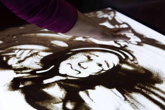 «Polvo de Estrellas» cuenta una historia con dibujos concebidos como obras de arte vivas, que cambian a medida que se desarrolla el argumento, combinadas con siluetas de sombras. Además, hay una modificación de las imágenes a través de la tecnología audiovisual. Se trata de un recurso plástico que busca despertar emociones, así como también transmitir valores que ayuden a interiorizar ideas y estimular la imaginación del público. Con este propósito, las creaciones con arena son ideales para contar historias llenas de poesía.