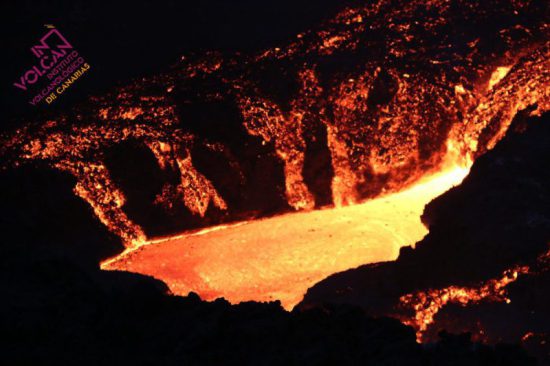Transcurrido un mes del inicio de la erupción volcánica, continúa el proceso de emisión de magma siguiendo un patrón similar al de días previos. Desde la Dirección del Pevolca se sigue especialmente la evolución de las coladas más septentrionales. La más cercana al mar, que discurre al sur de la Montaña de La Laguna, se encuentra a menos de cien metros de la costa. Cuando llegue a esta zona, se procederá al confinamiento de los núcleos de San Borondón, La Condesa, Marina Alta, Marina Baja y el núcleo de Tazacorte, en previsión de la emisión de gases que produzca el contacto de la lava con el mar.