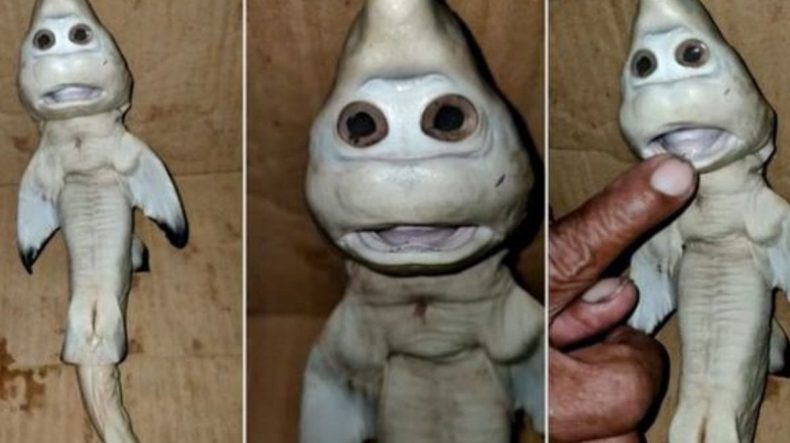 En #Indonesia un pescador descubrió una cría de tiburón con «rostro de humano».